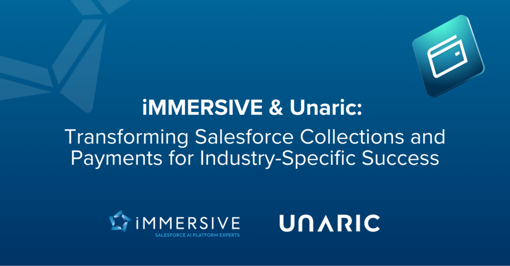 As part of this partnership, iMMERSIVE will work with Unaric to implement their collections and payments solution. Designed to reduce manual effort, improve cash flow visibility, and deliver smoother customer and client payment experiences, this collaboration embeds modern, Salesforce-native payments and collections directly into core business payment journeys. The solution enhances four of iMMERSIVE’s sub-vertical Catalyst™ accelerators: Office Leasing, Home Builders, Events and Catering, and Arrears Management.